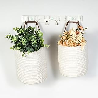コットンロープ編みハンギングバスケット 2個パック - シダ ハンギングバスケット フラワープラント 漏れないプラスチック裏地 ホワイト (M+L)