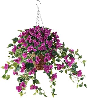 INQCMY 造花 ハンギングバスケット ブーゲンビリアシルクのつる パティオ芝生ガーデン装飾 フェイクフラワーセンターピース アイビーバスケットに造花 屋内 (パープル)