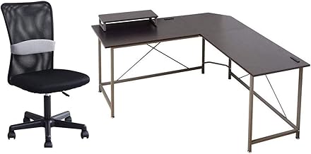 【セット買い】山善 サイバーコム コーナーパソコンデスク ダークブラウン PND-1600(DBR)+オフィスチェア メッシュバック ランバーサポート付き ブラック EHL-50(BK)