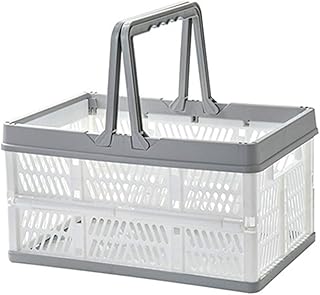 ksiuiue 折りたたみバスケット 手かご 折り畳み式 収納バスケット フォールディング カゴ ハンディコンテナ 取っ手付き 買い物かご 収納ボックス(グレー)