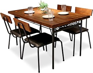 OSJ ダイニングテーブルセット 幅116cm ダイニング5点セット 4人掛け ダイニングテーブル イス 椅子 ダイニングセット シンプル 北欧 木製 スチール 一年 (ナチュラル)