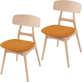 [ドウシシャ]ナチュラル×オレンジ 幅43.5×奥行55×高さ78.5cm ダイニングチェア 角型 天然木 GSC-OR2 2脚入