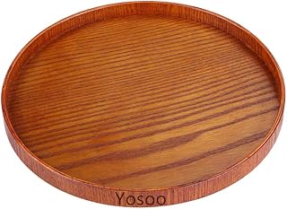 木製トレー 卓上用トレイ・盆 天然木製 すべらない 洗える お盆 ティー カフェ 定食用 業務用 家庭用 小物置き 定食盆 円形 (18*2cm)