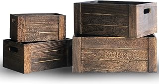 REVOLUMINI 装飾木製クレート 長方形収納ボックス4個セット ハンドル付き入れ子収納クレート 収納クレート 木製収納箱 ブラウン