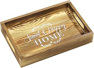 トレー Luxspire 木製 おしゃれ パイン材 小物入れ 取っ手付き 大 収納 天然素材 調理台 押入れ 戸棚 鏡台 盆栽置き カフェ お盆 木製トレー お茶 卓上収納 給仕 サービストレー インテリア ブラウン