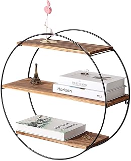 Homode フローティングシェルフ 3段 幾何学模様 円形壁棚 木製と金属製吊り下げ棚 素朴な農家の装飾に