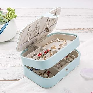 BEWISHOME ジュエリーボックス ロック付きジュエリーオーガナイザーボックス レディース ガールズ ジュエリーボックス ストレージケース イヤリング リング ネックレス カフスボタン 腕時計 シアン SSH78C