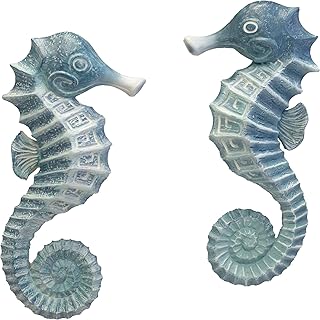 World of Wonders Steeds of Atlantis (2パック) エレガント 左右向き タツノオトシゴ 壁彫刻 手塗り 簡単取り付け ビーチハウス シャビーシック 海の生物 海洋 装飾 アクセント 9.5インチ