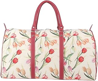 SignareタペストリーHoldall /ウィークエンダー/ Luggageバッグ/ビッグ旅行バッグチューリップホワイトデザイン