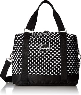 トラベル ウィークエンダー オーバーナイト キャリーオン ショルダー ダッフル トート バッグ オーバーハンドル トロリースリーブ (16インチまたは14インチ), 黒と白の水玉模様。, 6" x 11" x 14" - 15 liters (Small)