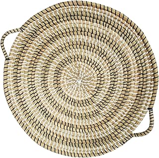 MARLIC ウォールバスケット ホームインテリア - ラウンドウィッカー織ボウル - ハンドル付きブラック&ホワイトトレイ - 手織り ボーホー アートバスケット (メリディアン、17.7 x 20.5インチ)