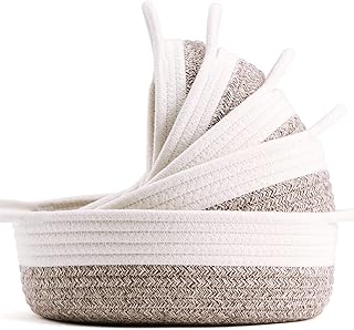 NUZYZ ラウンドコットンロープバスケット 5個 100%天然コットン織ストレージバスケットセット キートレイ 子供用おもちゃバスケット ハンドル付き オーガナイザービン ホームインテリア