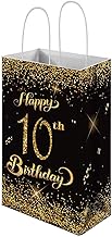 Happy 10th Birthday ギフトバッグ ハンドル付き 12個パック ゴールドとブラック 10年パーティー記念バッグ ゲスト用 ペーパートリートバッグ プレゼントラップ デコレーション