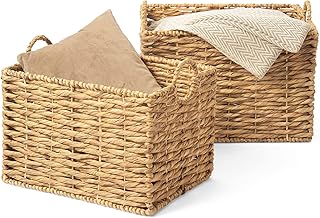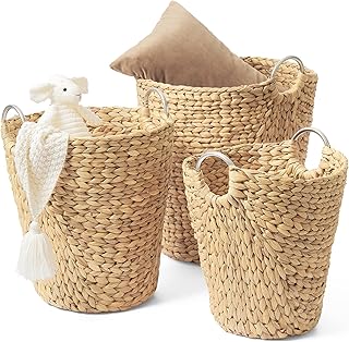 Artera Home ウィッカー ランドリーバスケット 手織り 水 ヒヤシンス 大型バスケット 3個セット