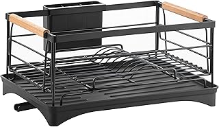 KAKIBLIN 食器乾燥ラック ステンレススチール食器ラックと水切りボードセット カウンター用 大型キッチンディッシュラック 排水板付き ブラック