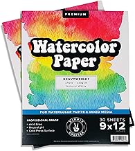 2パック 水彩紙 水彩絵の具と水彩絵の具マーカーとペン用 9インチ x 12インチ - 30枚
