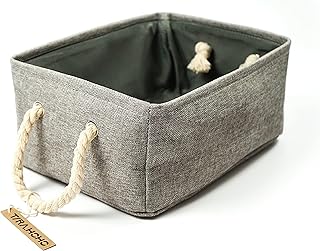 TIRAHOHO 折りたたみ式ファブリックストレージバスケット 折りたたみ式丈夫なコットンリネンビン ウィッカーロープハンドル付き 棚の整理に 子供部屋のクローゼットに グレー M 長さ14.2インチ x 幅10.2インチ x 高さ5.9インチ