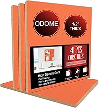 ODOME コルクボードタイル 12インチ x 12インチ - 厚さ1/2インチ 正方形掲示板 コルクタイル プッシュピン50個付き オレンジ粘着コルクボード 壁用 メモ用掲示板 写真用 DIYミニ壁