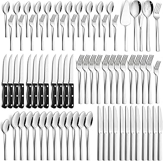 77点 銀食器セット ステーキナイフ付き ソリッドステンレススチール 食器 モダンでエレガントなカトラリー食器セット サービングセット 鏡面仕上げ 食洗機対応 12人用
