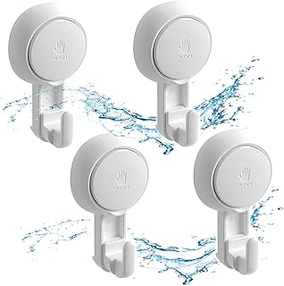 Ingzy 吸盤フック 4個パック 防水 高耐久 真空吸盤フック 損傷なし 強力なシャワーフック シャワー壁 キッチン 浴室 取り外し可能 再利用可能 最大容量 11ポンド