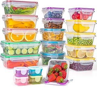 食品保存容器 蓋付き 20個パック プラスチック製食品容器セット 漏れ防止 BPAフリー 再利用可能 電子レンジ/冷凍庫/食器洗い機対応