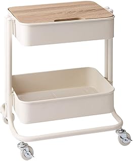 ヴィンテージ調 キッチンワゴン 天板付き キャスター付き 北欧 おしゃれ ワゴン 収納 作業台 キッチン ラック スチールラック (2段, ホワイト)