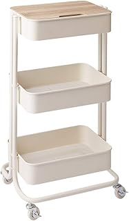 ヴィンテージ調 キッチンワゴン 天板付き キャスター付き 北欧 おしゃれ ワゴン 収納 作業台 キッチン ラック スチールラック (3段, ホワイト)