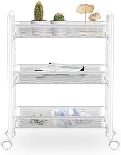 LentyJP キッチンワゴン スチールラック 3段 メッシュ キャスター付き トローリー ホワイト