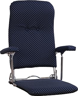 お座敷座椅子 折りたたみ座椅子 リクライニング 肘付き 完成品 ネイビー