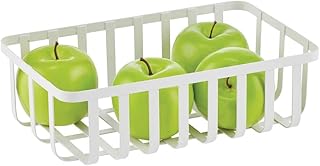 mDesign ファームハウス メタルキッチンストレージオーガナイザー バスケットビン - キッチンキャビネットやパントリーに - フルーツ、スナック、シリアル、ベーキング用品、パスタ、パケットの保管に - ホワイト