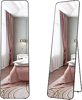 Vlsrka フルレングス フロアミラー 壁掛けミラー 自立式ミラー 吊り下げミラー 寝室用フルボディミラー ラウンドコナー 63インチ x 18インチ (ブラック)
