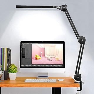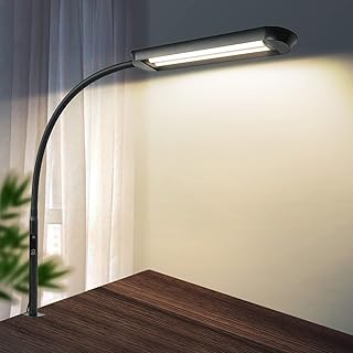 SenuGo デスクライト led, 12W 800LM, 目に優しい, 無段階調光、調色, タイマー 記憶機能付き, 平面発光, 360度回転アーム, タッチセンサー おしゃれ, クリップライト, デスクライト クランプ, 卓上ライト, 読書灯, 電気スタンド, スタンドライト